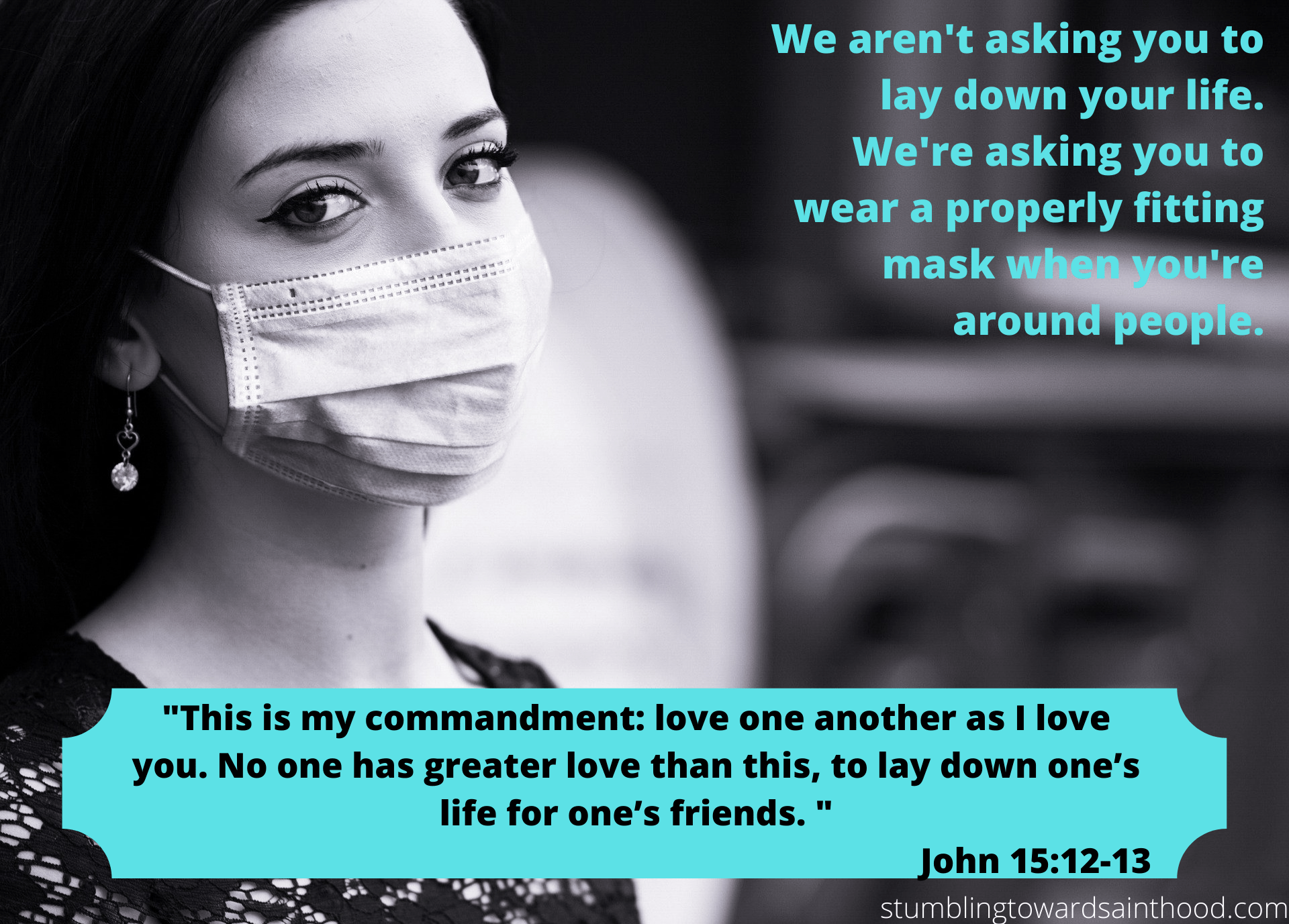 If you’d like to read what someone else wrote on this topic, I found this CNA article called “For Catholics, wearing masks can be an act of charity for neighbor” right as I was finishing up this blog post.